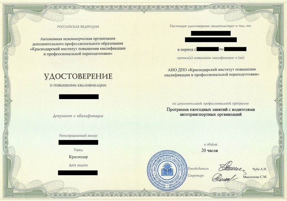 Курсы повышение квалификации программа ежегодных занятий с водителями автотранспортных организаций в Санкт-Петербурге