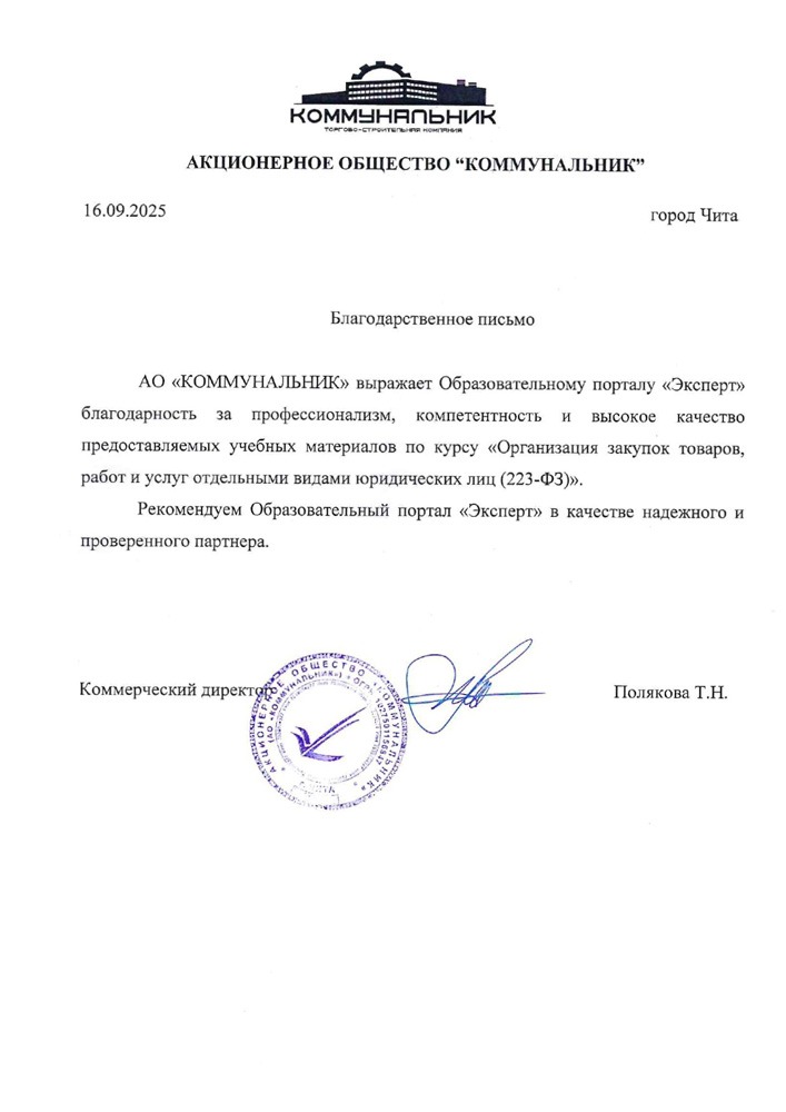 - заключение договора на дистанционное обучение с образовательным порталом «Эксперт»;